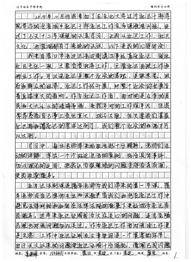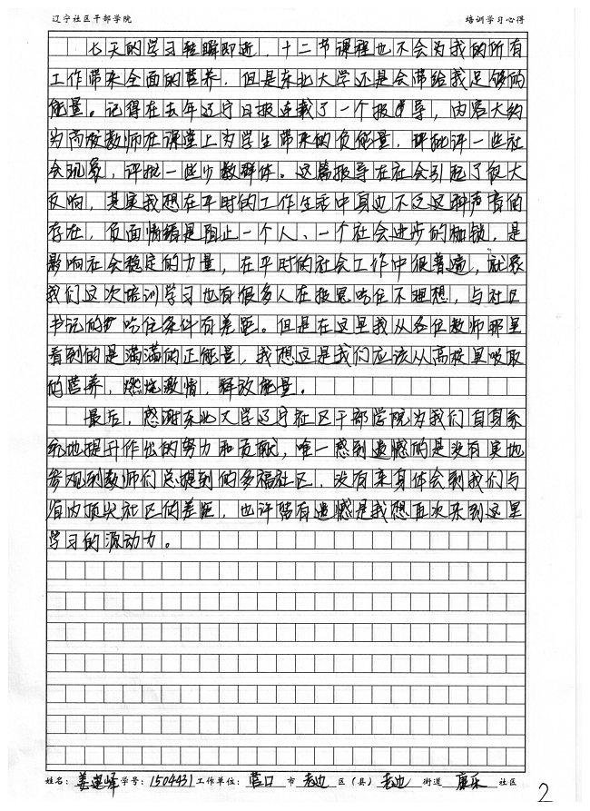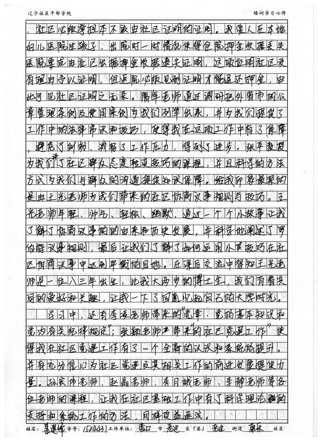 营口市老边区老边街道康乐社区主任姜建峰培训学习心得