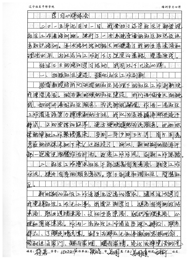铁岭市昌图县昌图镇西街社区干部符君培训学习心得