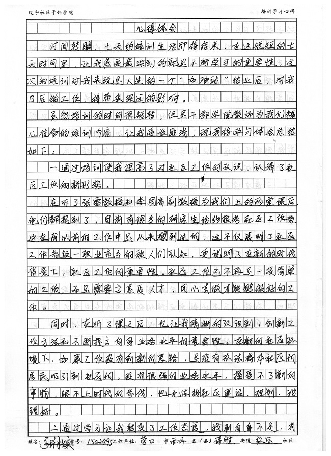 营口市西市区得胜街道红运社区干部张秋实培训学习心得