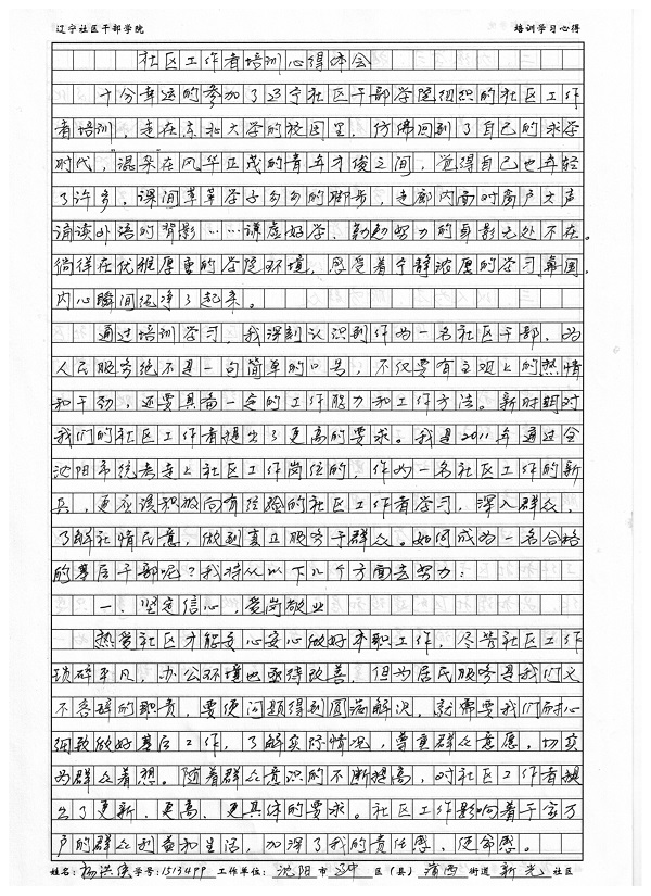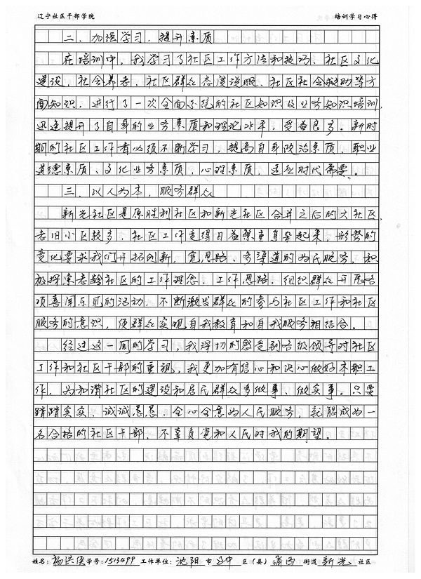 沈阳市辽中县蒲西街道新光社区杨洪侠学习心得
