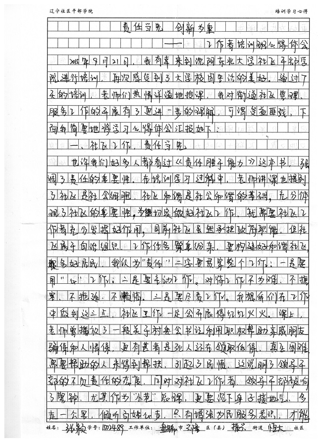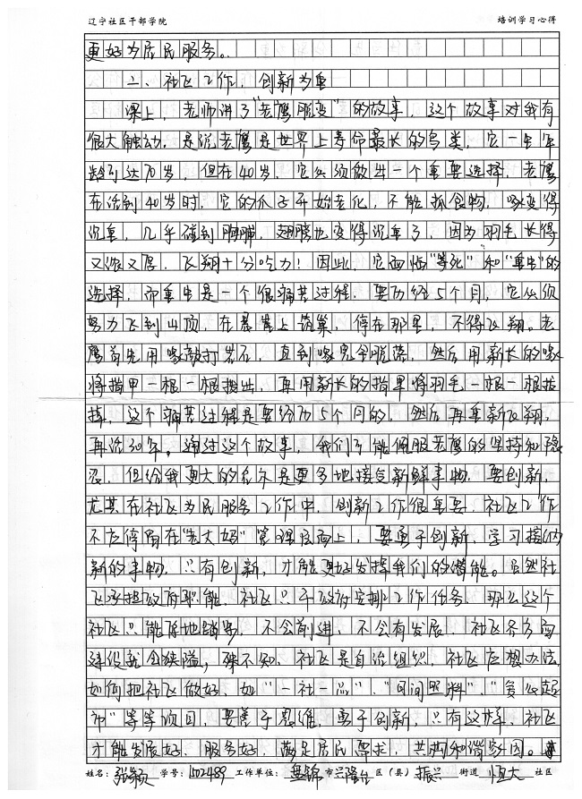 盘锦市兴隆台区振兴街道恒大社区干部张颖培训学习心得