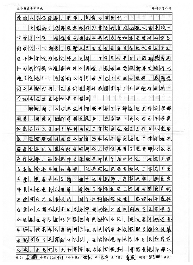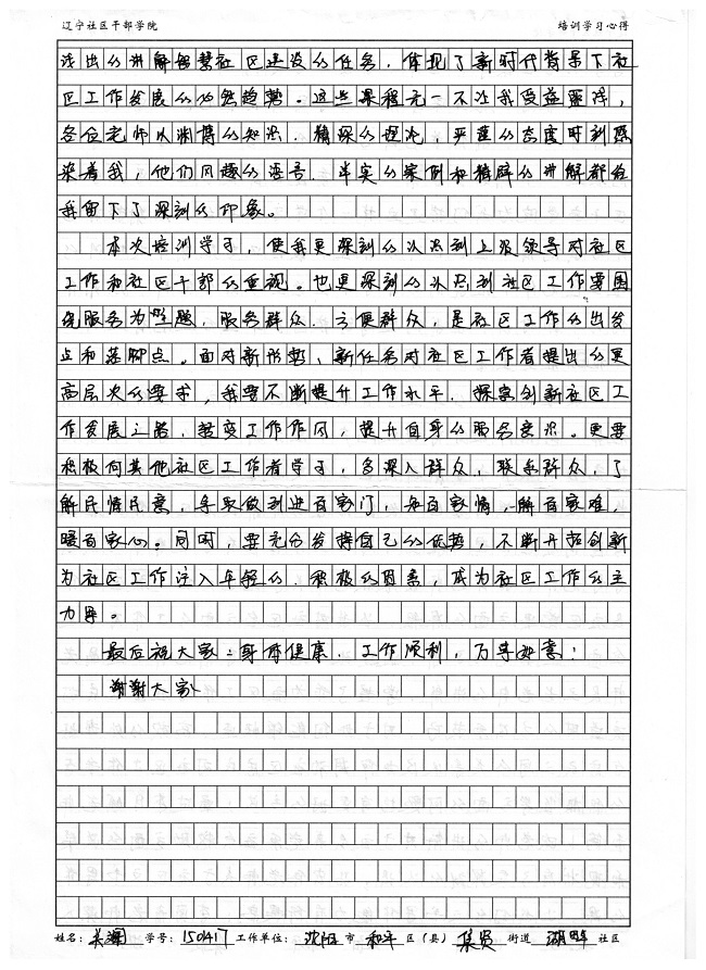 沈阳市和平区集贤街道湖畔社区干部关斓培训学习心得