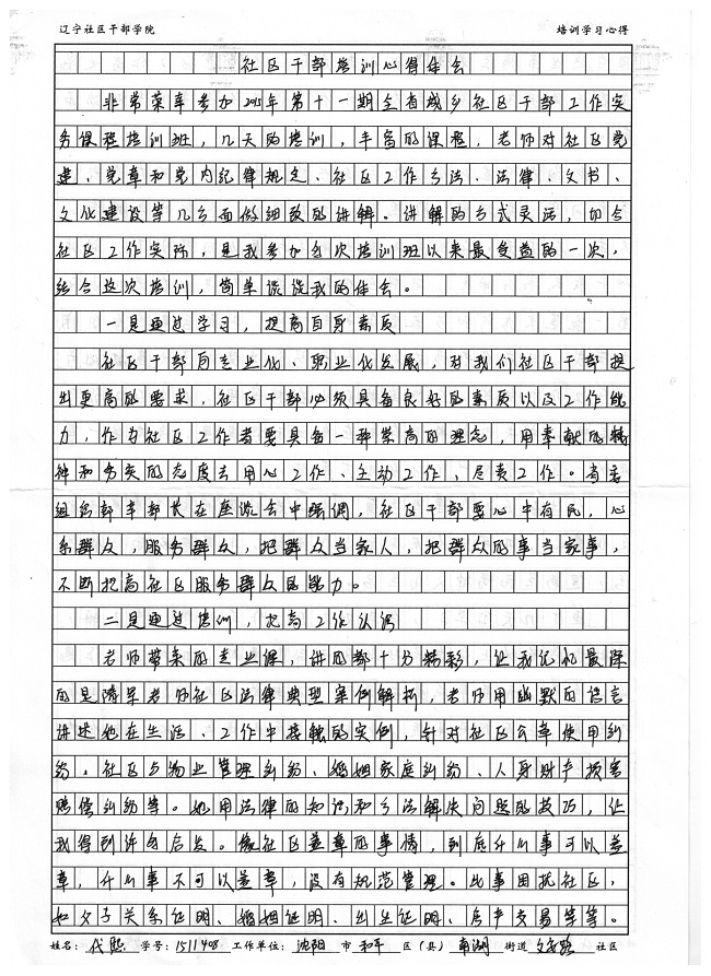 沈阳市和平区南湖街道文安路社区副书记代熙培训心得