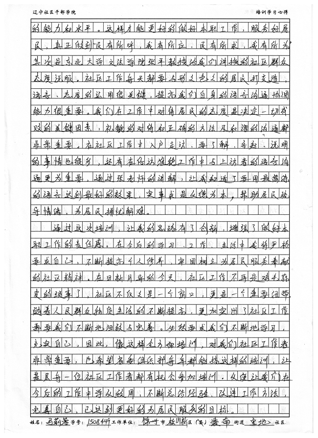 锦州市松山新区凌南街道宝地社区副主任马莉蓉培训心得