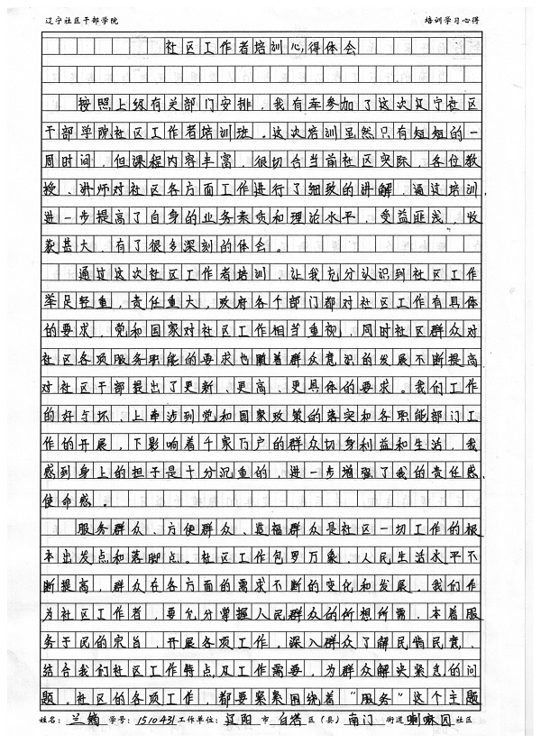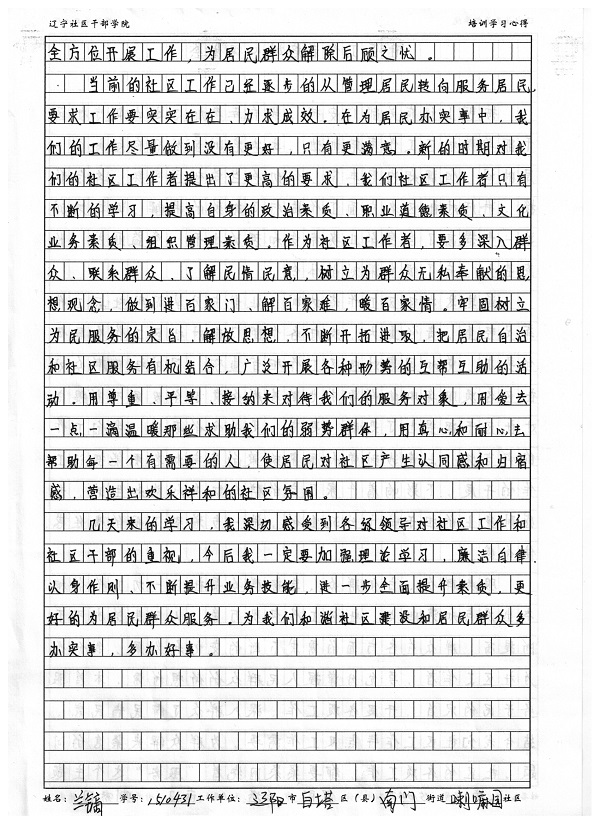 辽阳市白塔区南门街道喇嘛园社区副书记兰镝培训心得