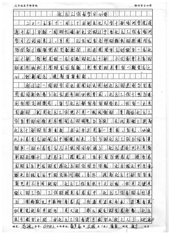 葫芦岛市兴城市温泉街道康宁社区委员冯迪培训心得