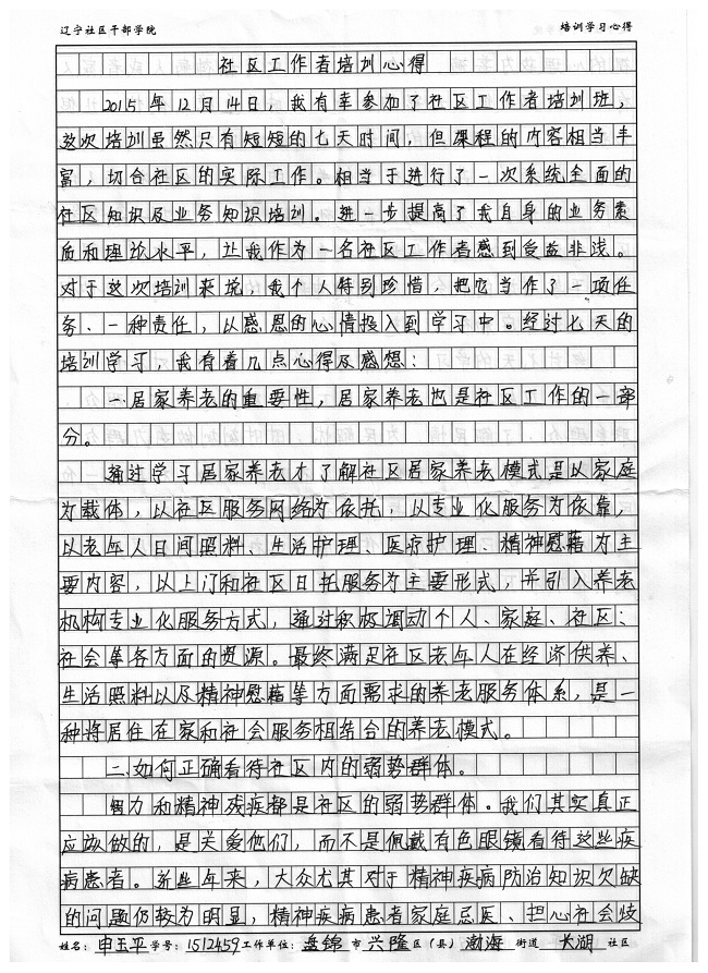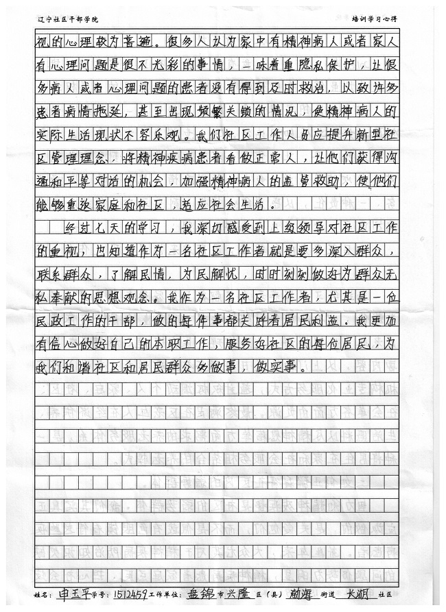 盘锦市兴隆区渤海街道长湖社区申玉平学习心得