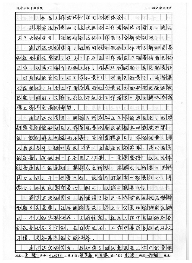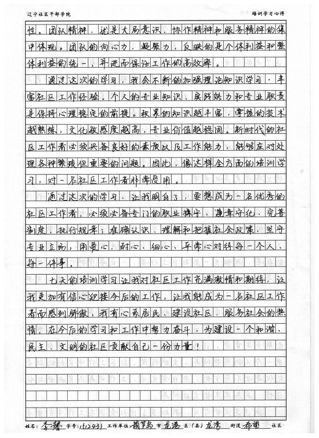 葫芦岛市龙港区龙湾街道希望社区李馨学习心得