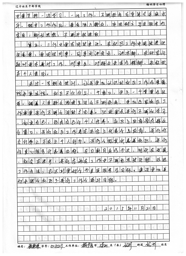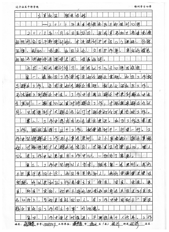 葫芦岛市连山区站前街道站前社区副书记张艳荣培训心得