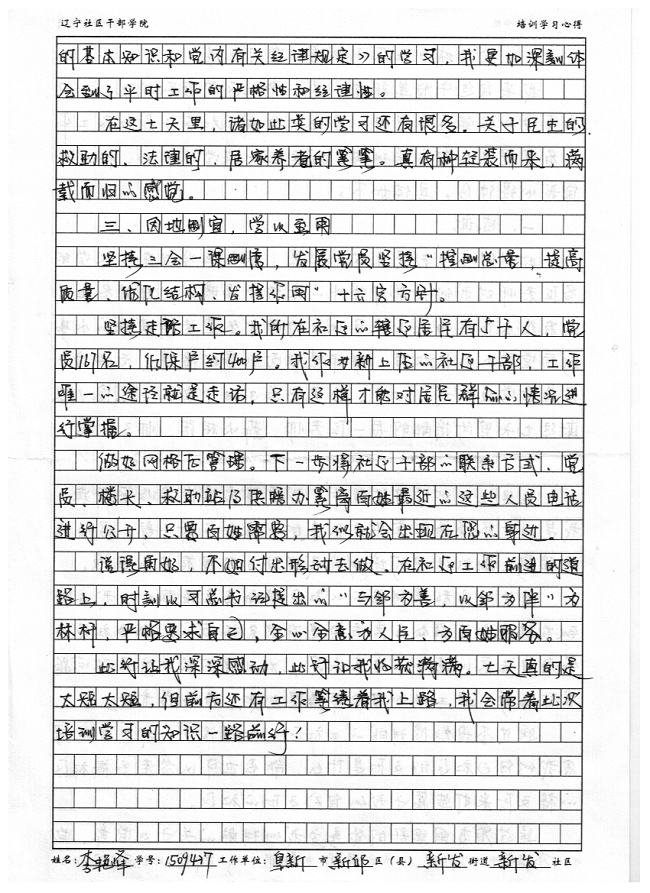 阜新市新邱区新发街道新发社区党委副书记李艳峰培训心得