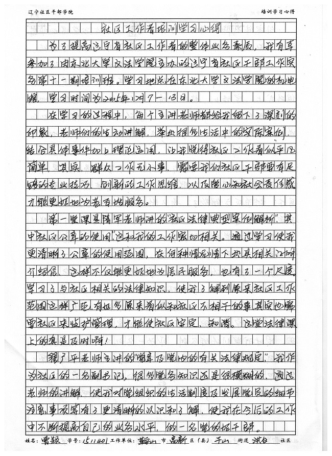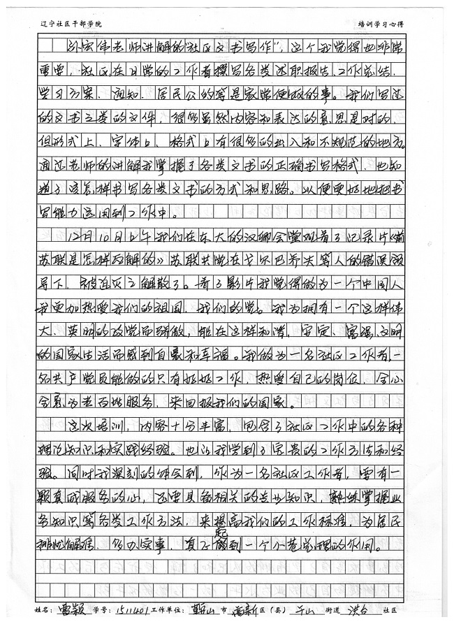 鞍山市高新区千山街道洪台社区副书记曹颖培训心得