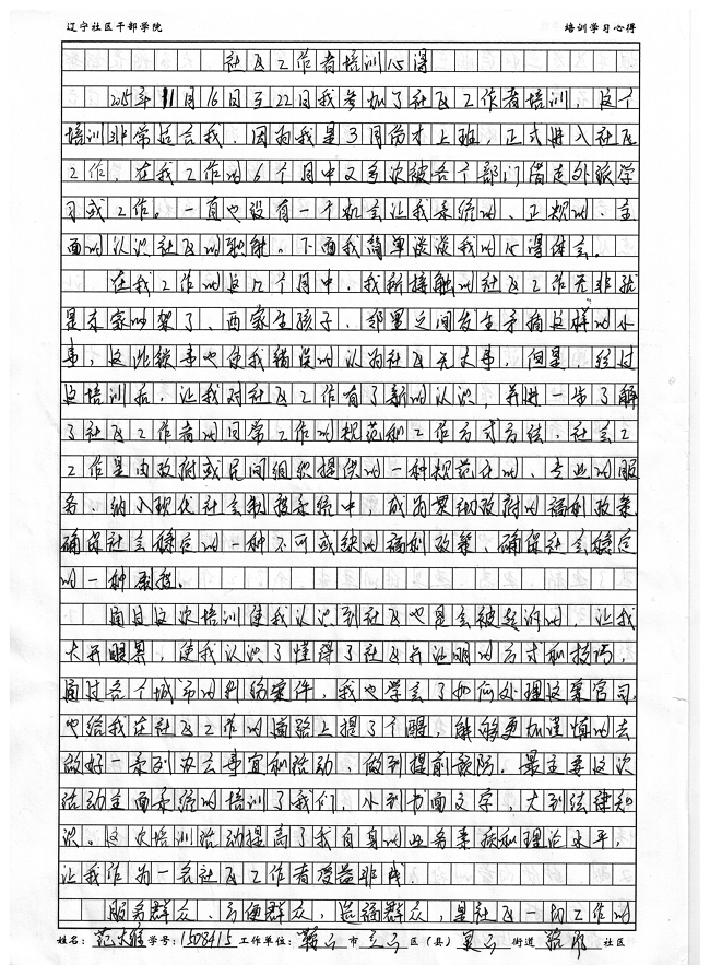 鞍山市立山区灵山街道路风社区副主任职务范大维培训心得