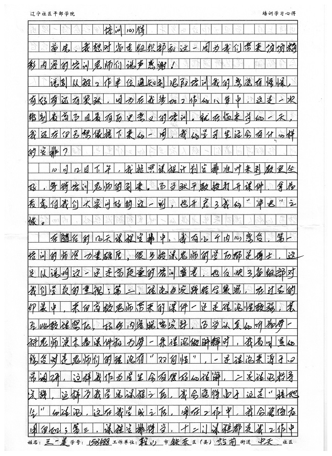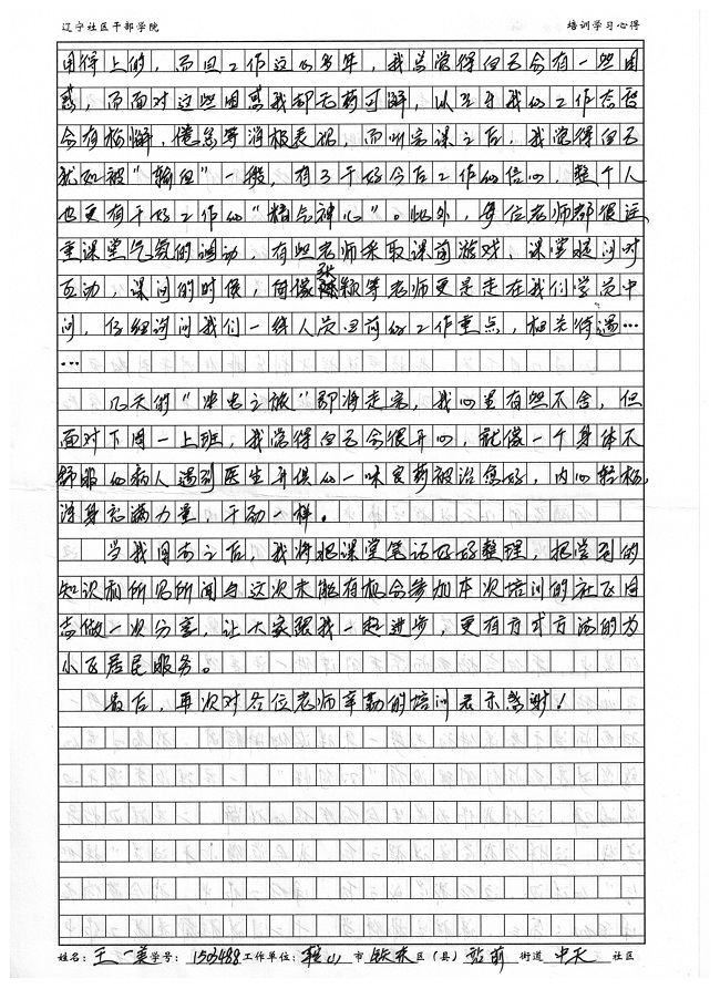 鞍山市铁东区站前街道中天社区副书记王一美培训学习心得