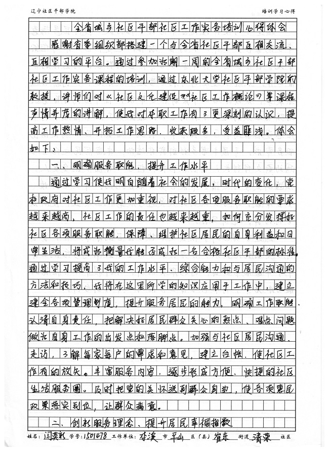 本溪市平山区崔东街道清荣社区干部闫英新培训学习心得