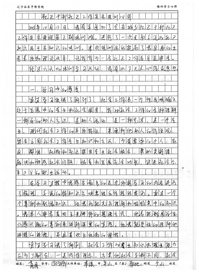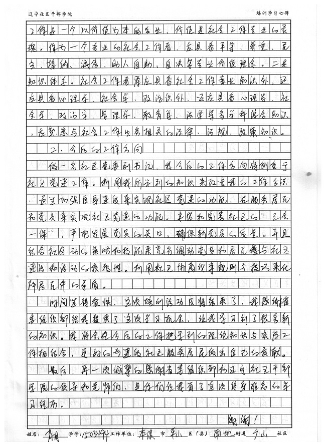 本溪市平山区南地街道广山社区副书记肖月培训学习心得