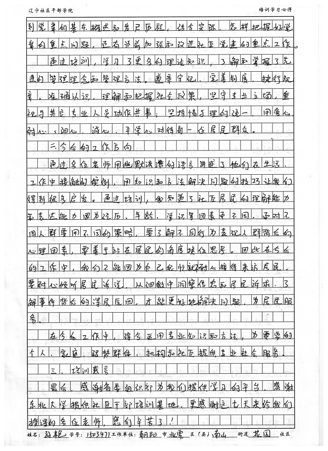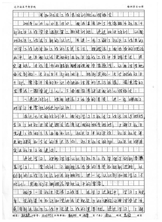 朝阳市北票市南山管理区花园社区副书记孙艳培训学习心得