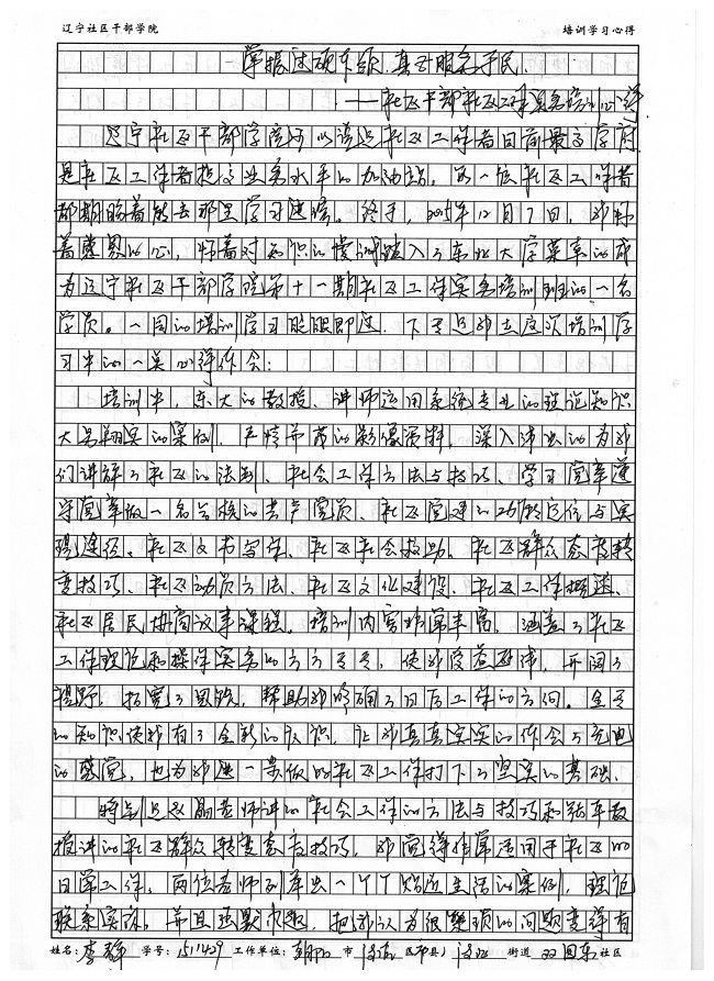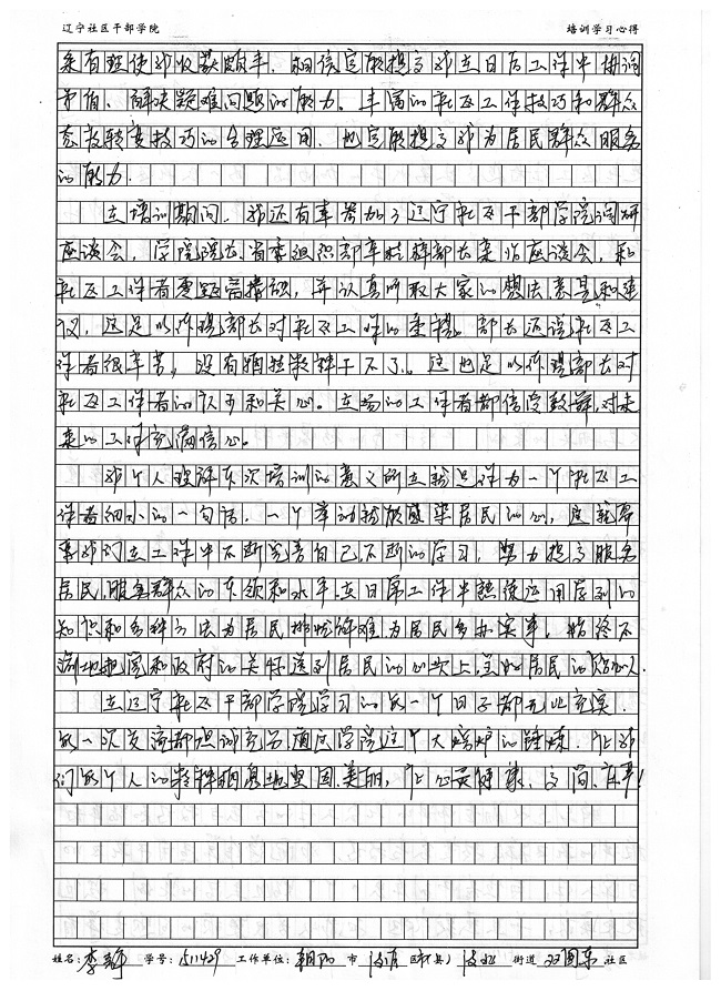 朝阳市凌源市凌源街道双圆东社区居委会主任李静培训心得