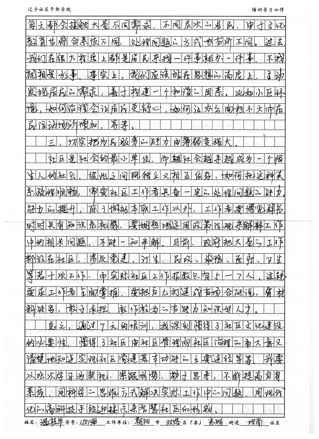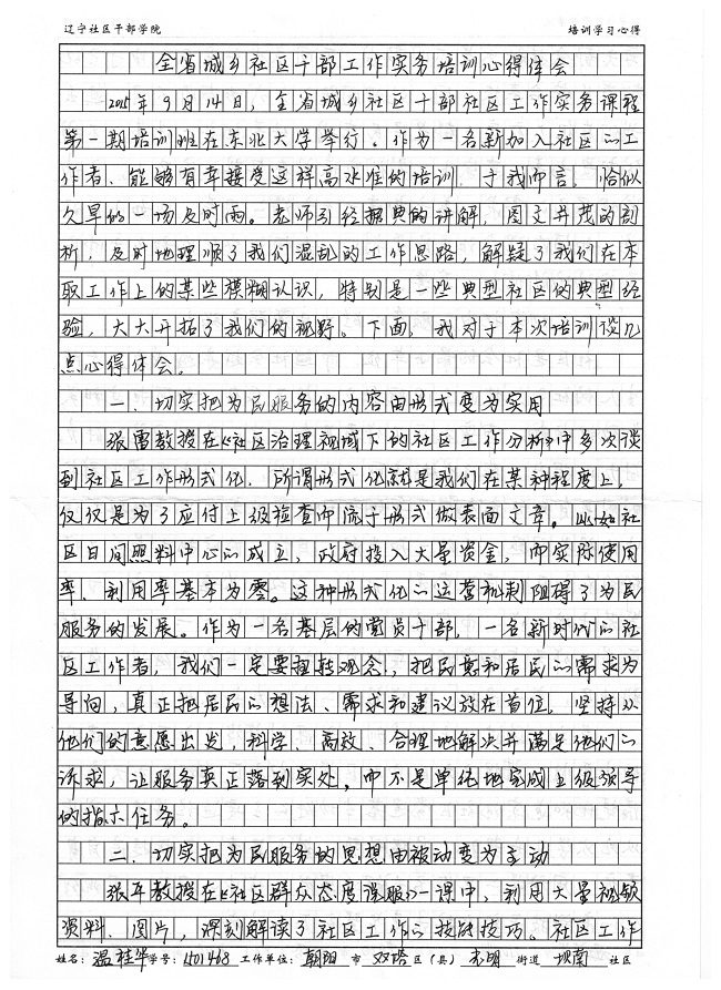 朝阳市双塔区光明街道坝南社区干部温桂华培训学习心得