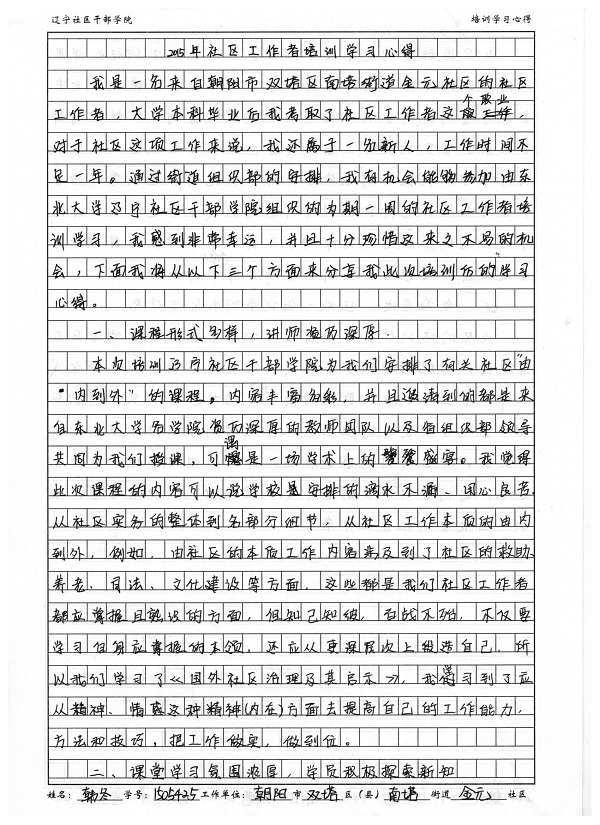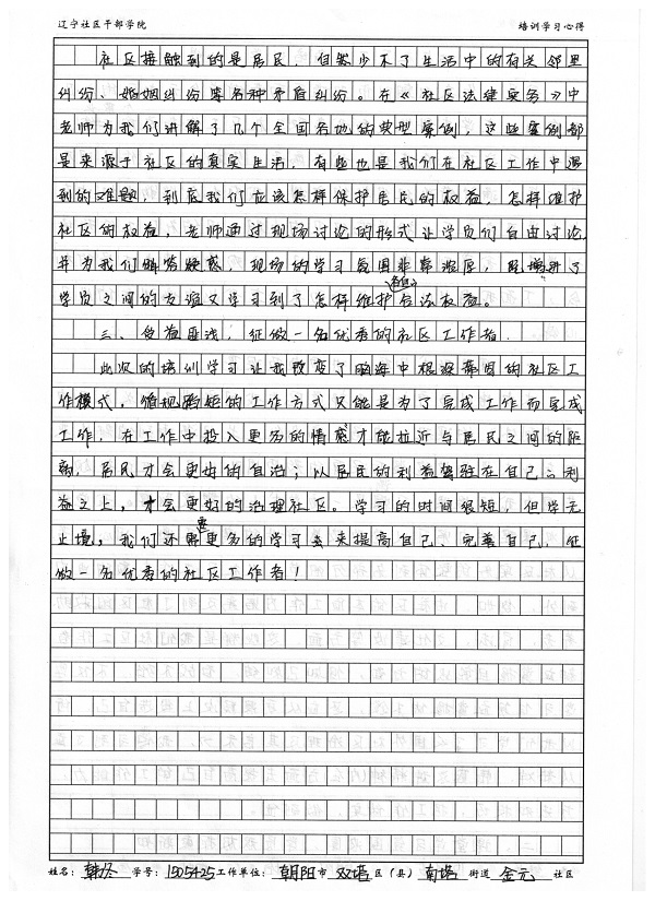 朝阳市双塔区南塔街道金元社区委员韩冬培训学习心得