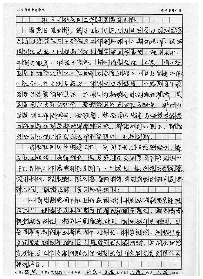 丹东市元宝区八道街道八道社区张慧学习心得