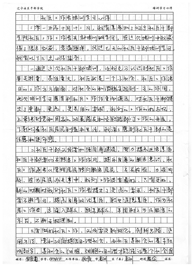 抚顺市东洲区东洲街道腈纶社区副书记崔维菊培训学习心得