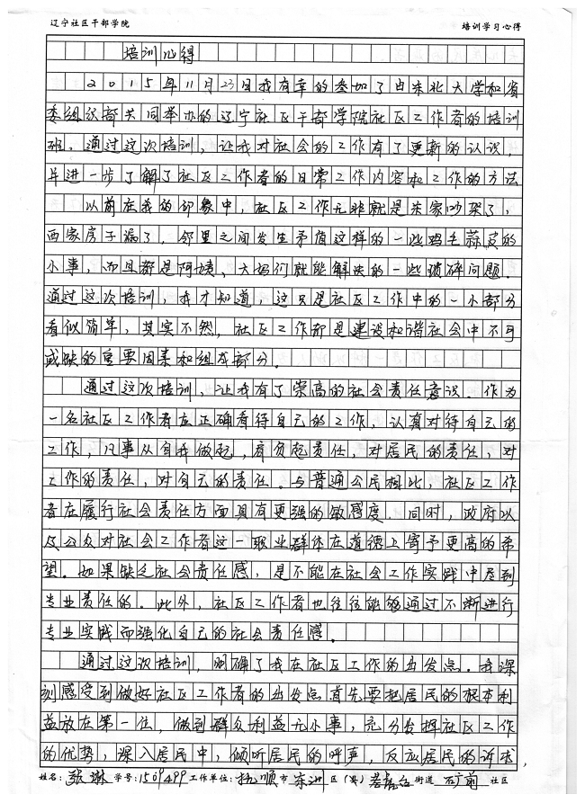 抚顺市东洲区老虎台街道矿前社区副书记张琳培训心得