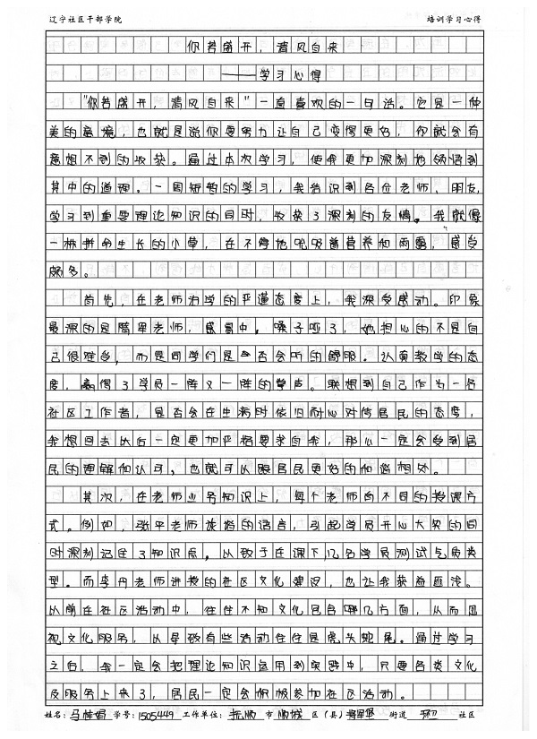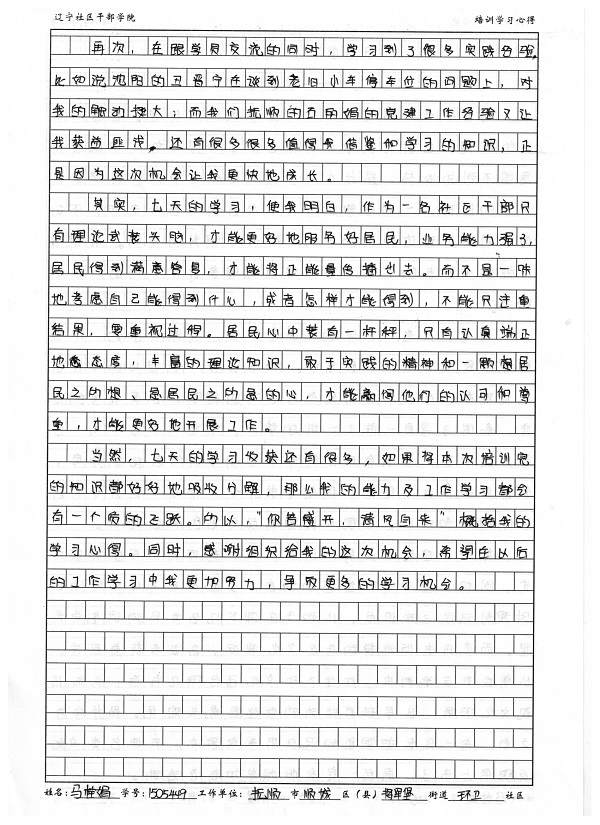 抚顺市顺城区将军堡街道环卫社区副书记马桂娟培训学习心得