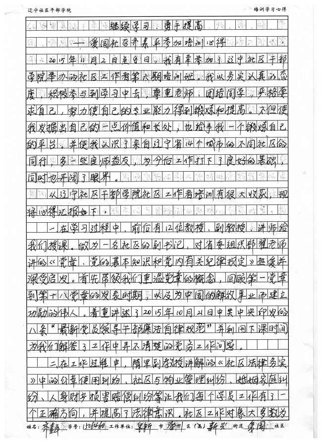 阜新市海州区新兴街道爱国社区齐素平学习心得