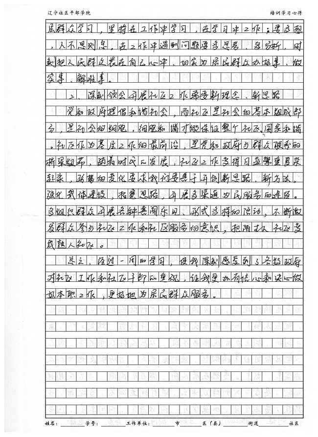 阜新市细河区东苑街道龙泽社区干部刘佳培训学习心得
