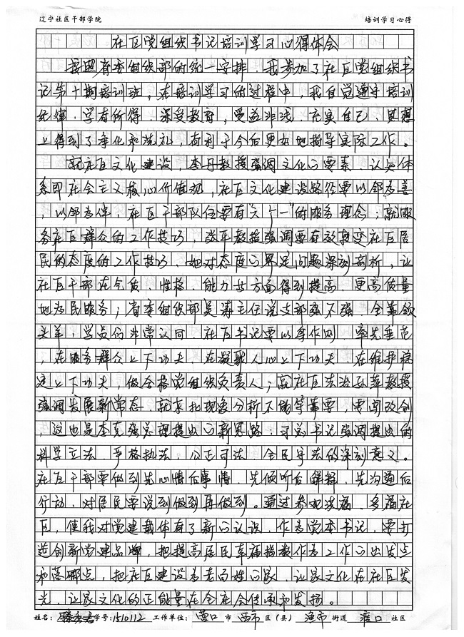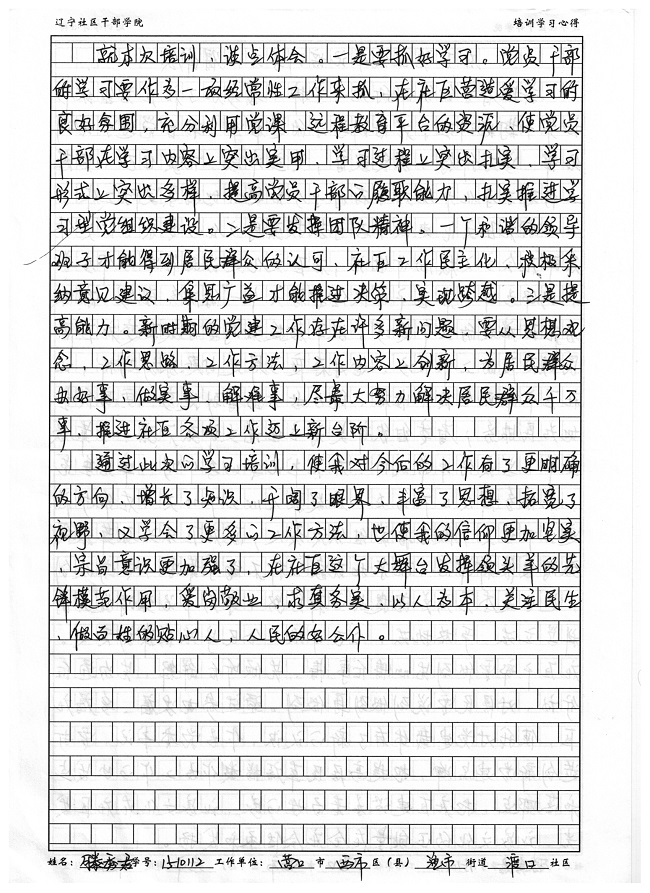 营口市西市区渔市街道渡口社区滕秀君培训学习心得