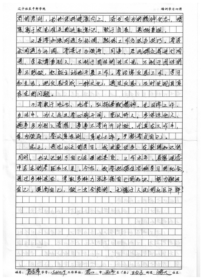营口市西市区五台子街道鸿大社区房金帛书记培训心得