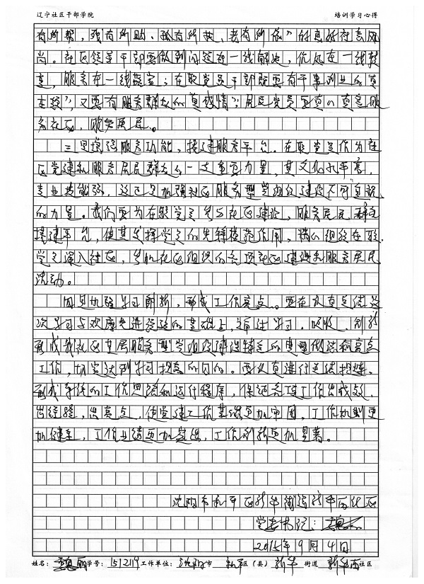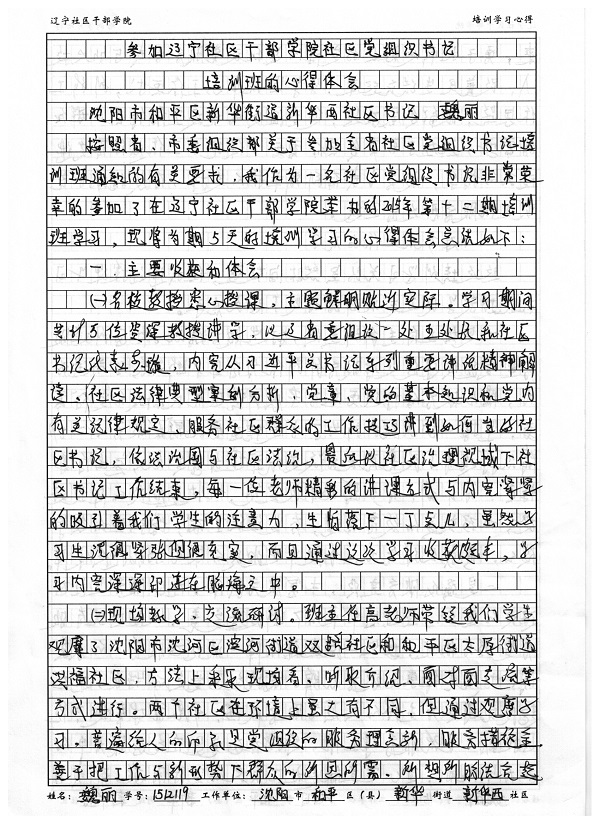 沈阳市和平区新华街道新华西社区书记魏丽培训心得
