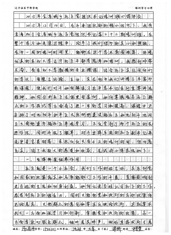 沈阳市大东区津桥街道中学堂社区汤丹丹书记培训心得