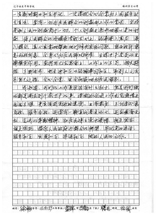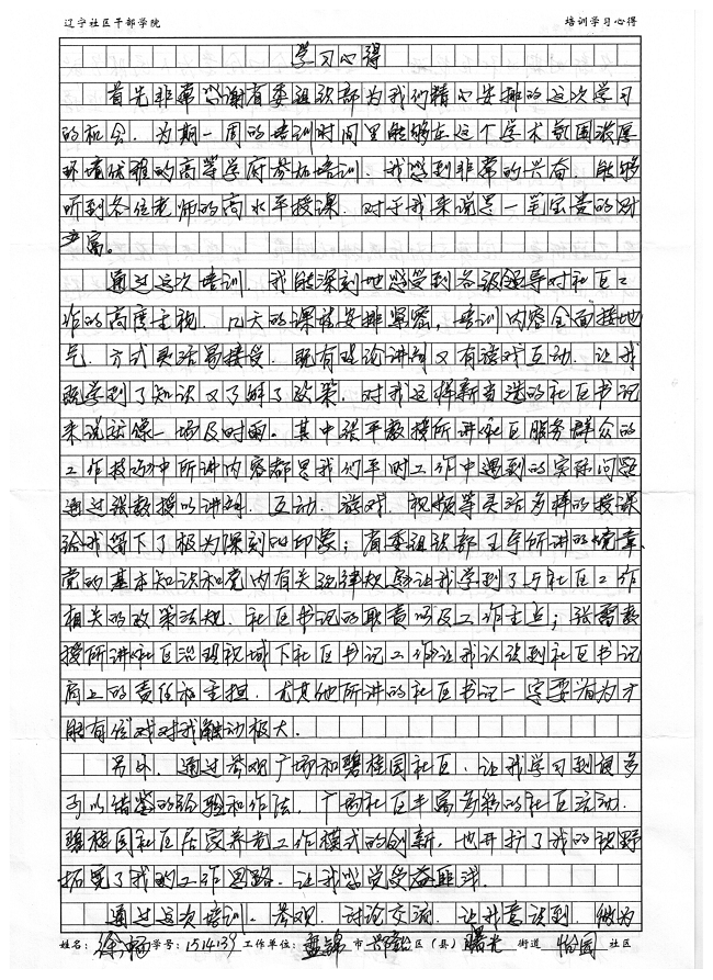盘锦市兴隆台区曙光街道怡园社区书记徐畅培训学习心得