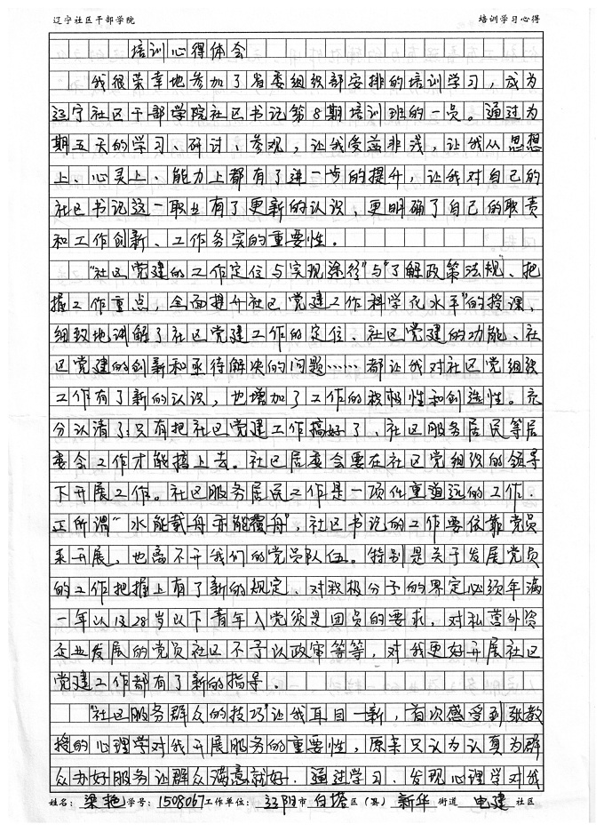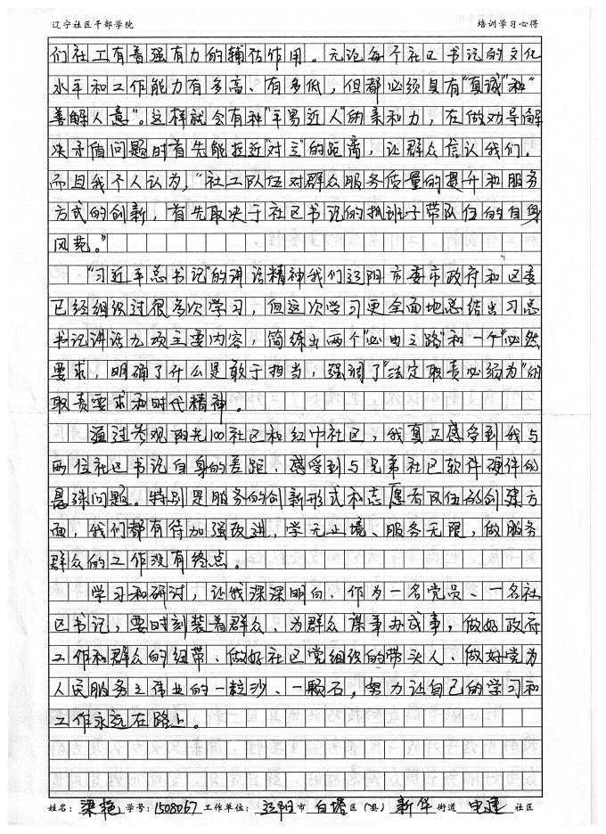 辽阳市白塔区新华街道电建社区书记梁艳培训学习心得