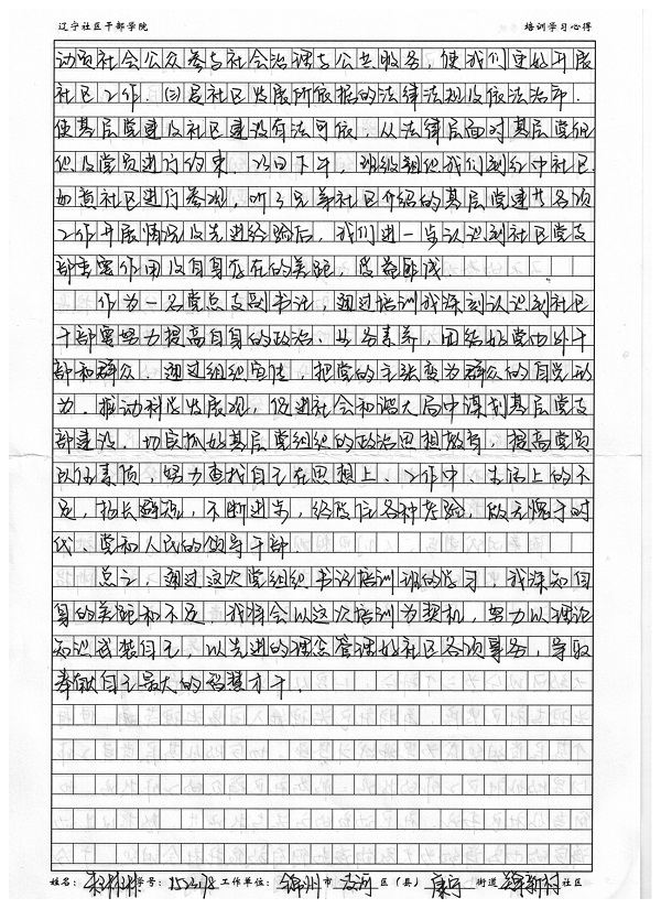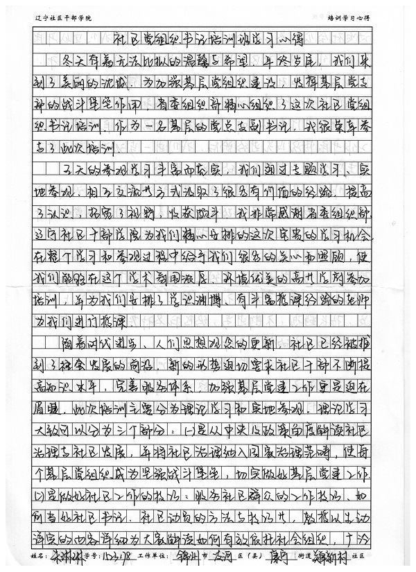 锦州市凌河区康宁街道关单新村社区朱琳琳书记培训心得