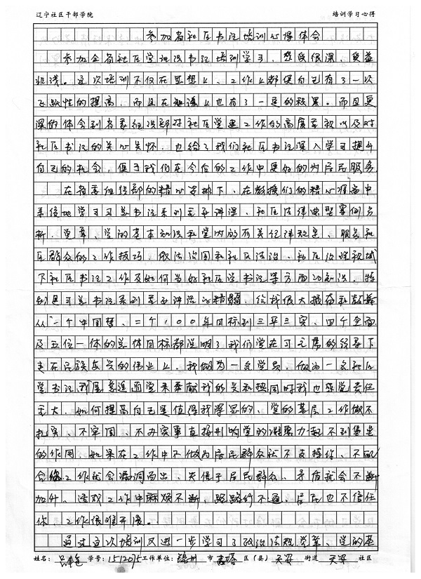 锦州市古塔区天安街道天安社区书记张晗培训学习心得