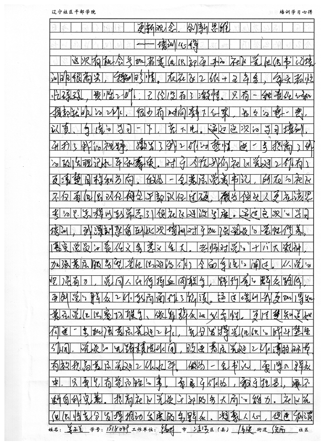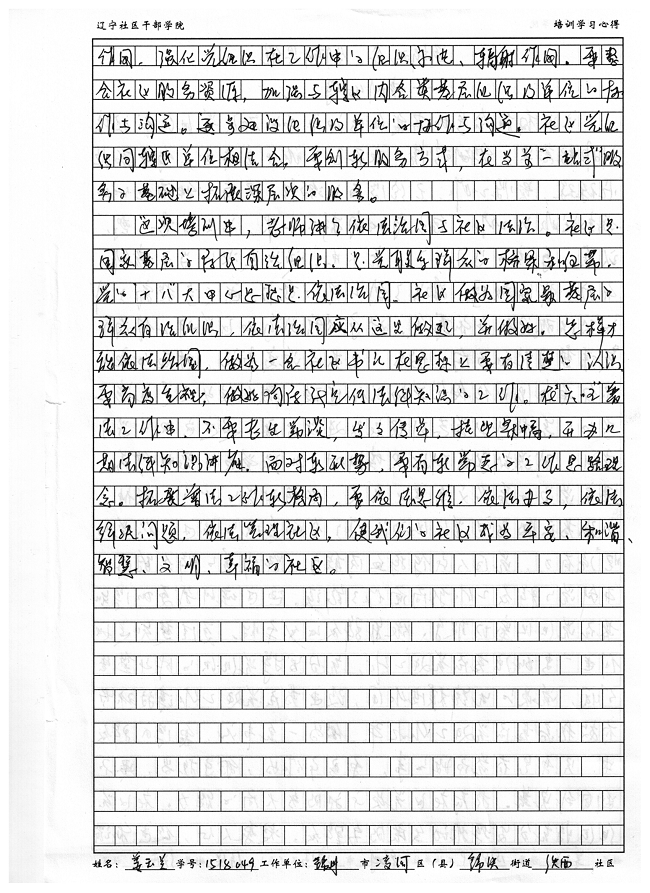 锦州市凌河区锦铁街道铁西社区党委书记姜玉兰培训心得
