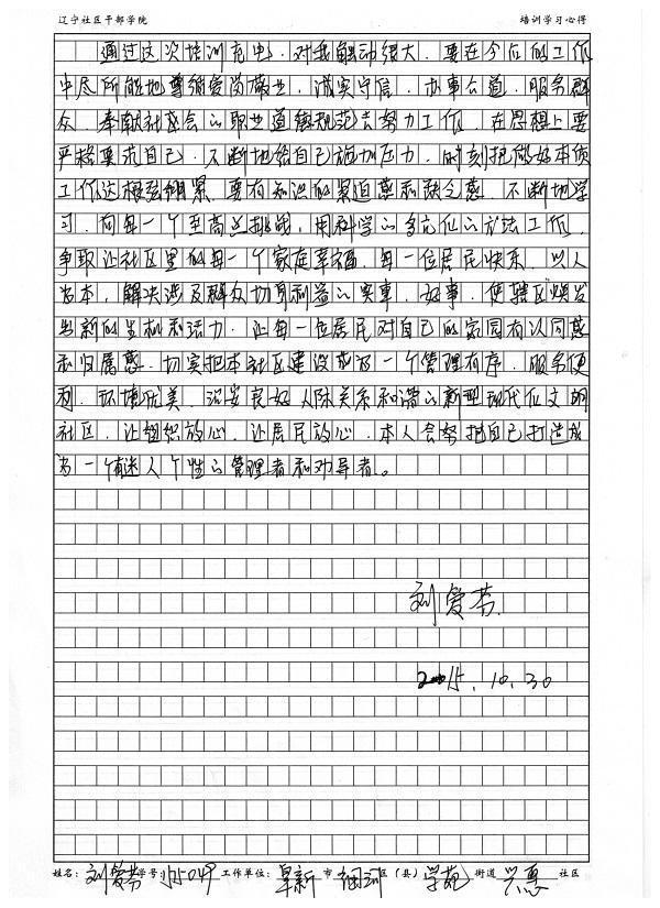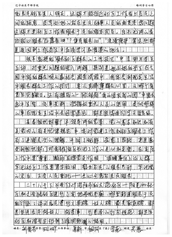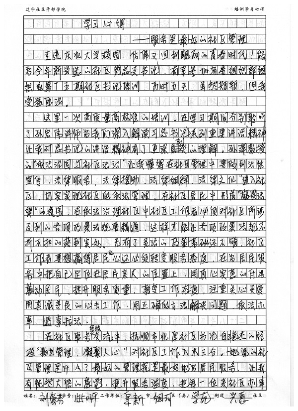 阜新市细河区学苑街道兴惠社区书记刘爱芬培训学习心得
