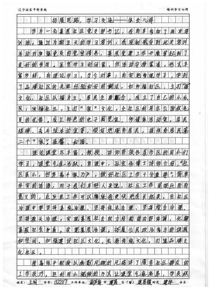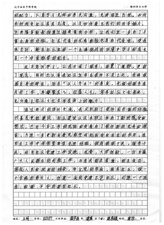 葫芦岛市建昌区建昌镇建学社区王玥书记培训心得