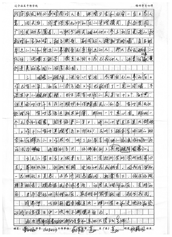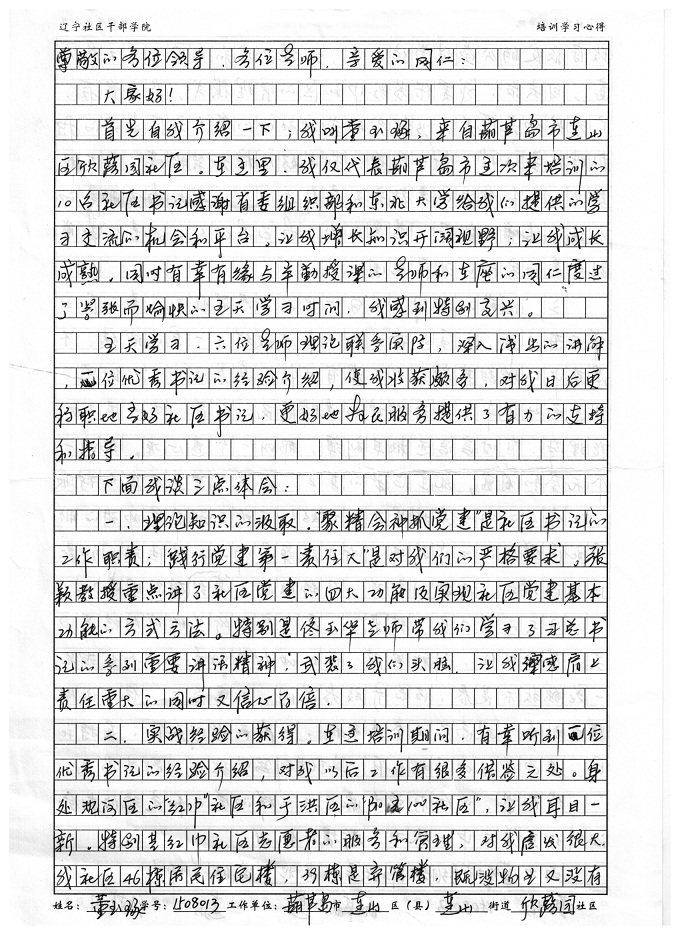 葫芦岛市连山区连山街道欣蕗园社区书记董玉琢培训学习心得