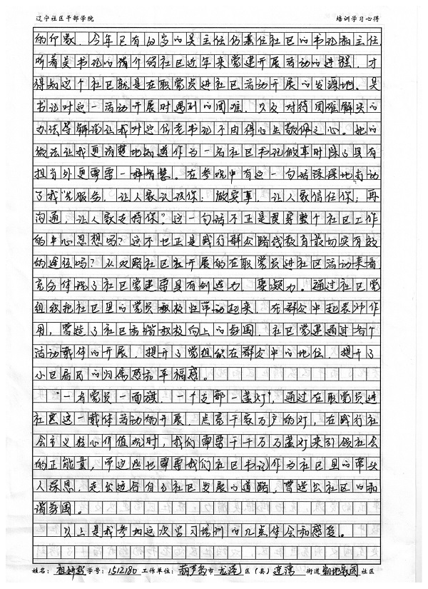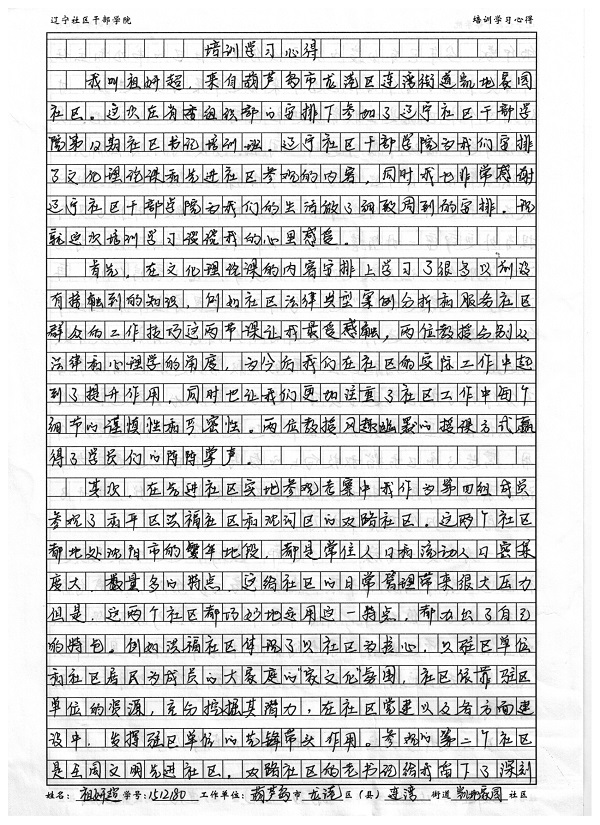 葫芦岛市龙港区连湾街道凯地家园社区书记祖妍超培训学习心得