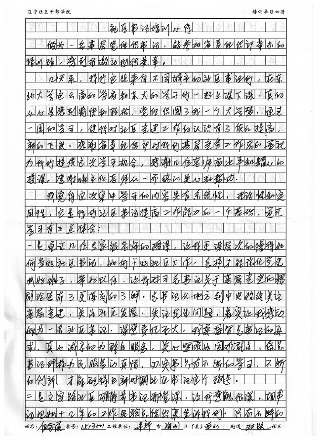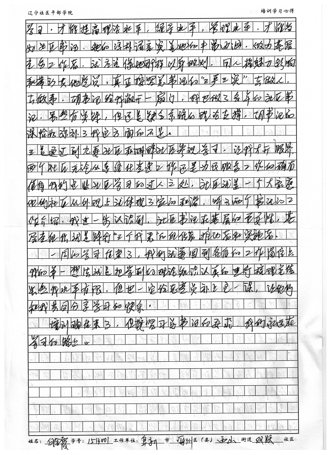 阜新市海州区西山街道双跃社区书记白金霞培训学习心得