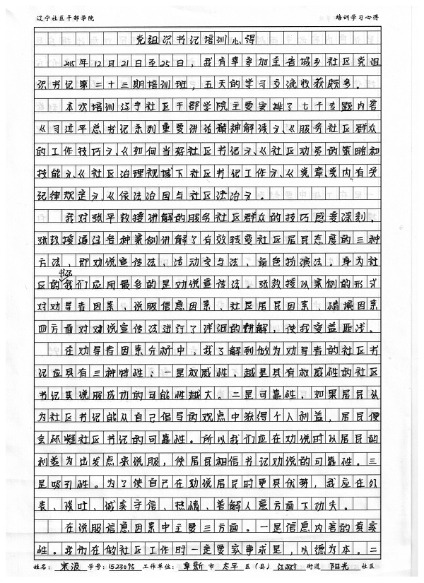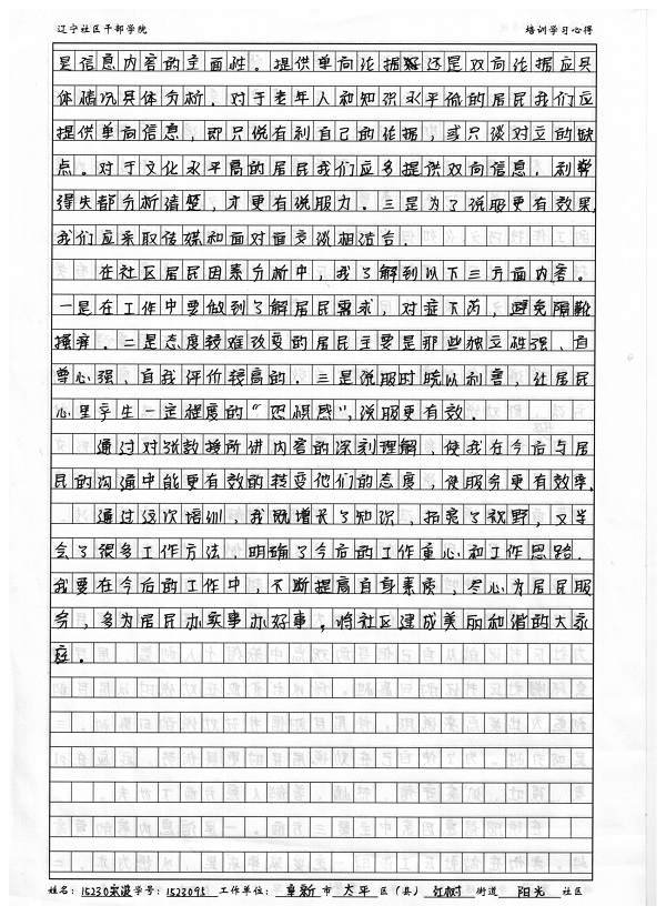 阜新市太平区红树街道阳光社区宋波书记培训心得