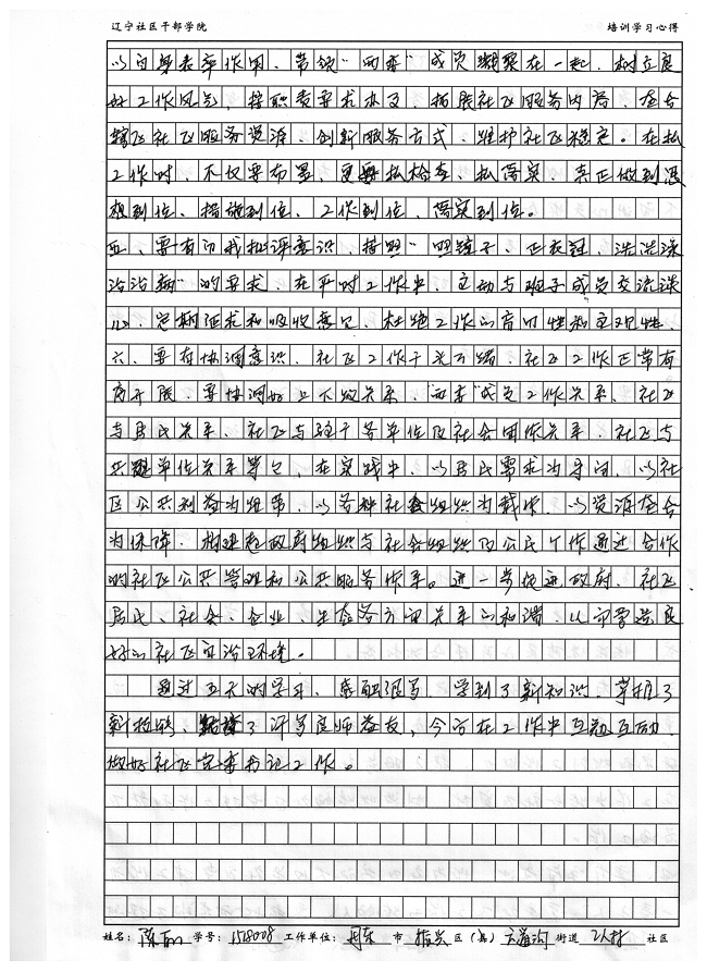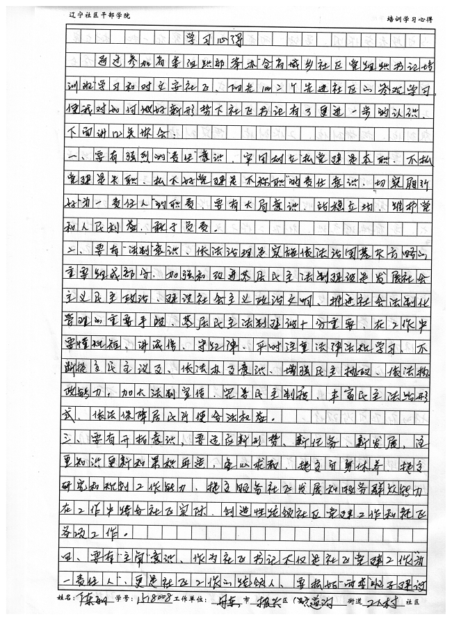 丹东市振兴区六道沟街道工人村社区书记陈丽培训心得
