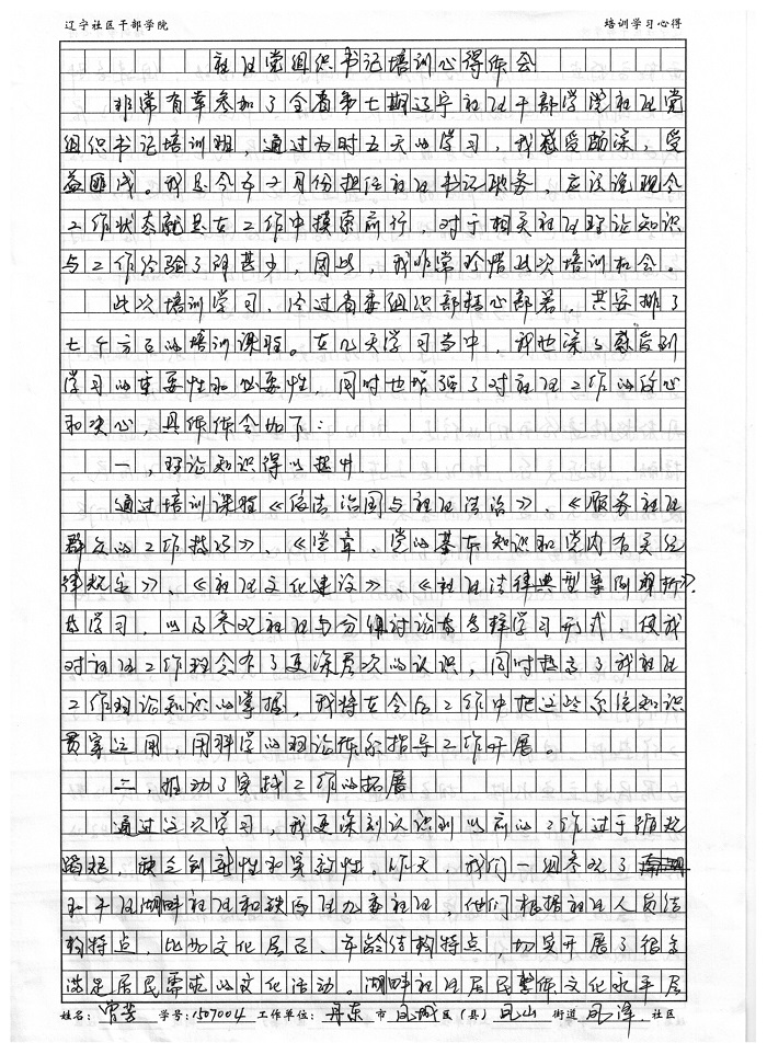 丹东市凤山街道办事处凤泽社区党委书记曾芳学习心得
