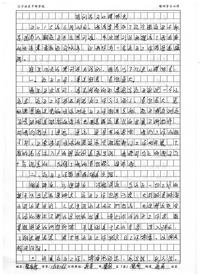 丹东市宽甸区宽甸街道府前社区书记张淑新培训学习心得
