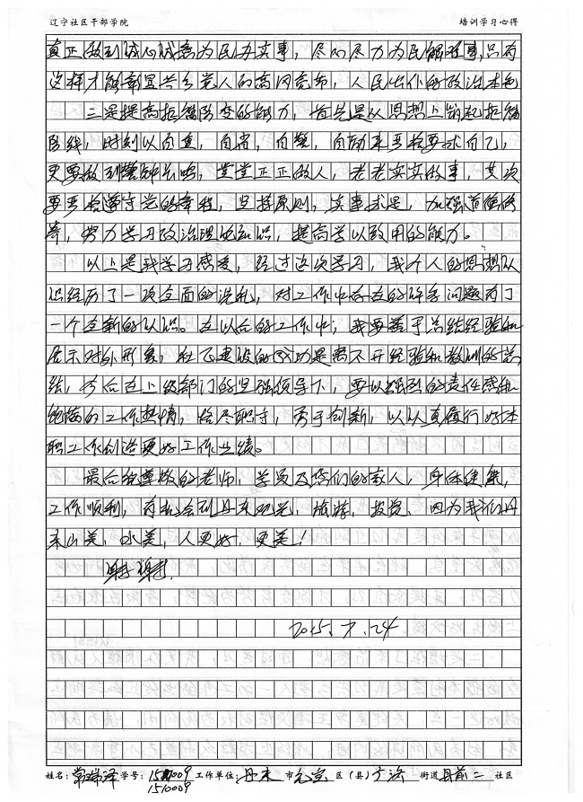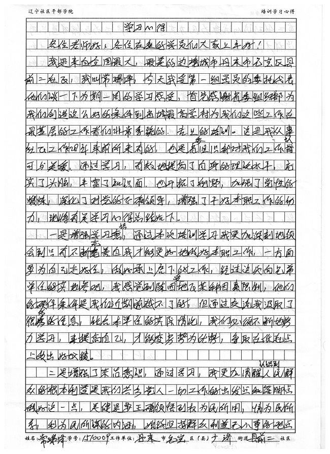 丹东市元宝区广济街道县前二社区常瑞泽培训学习心得