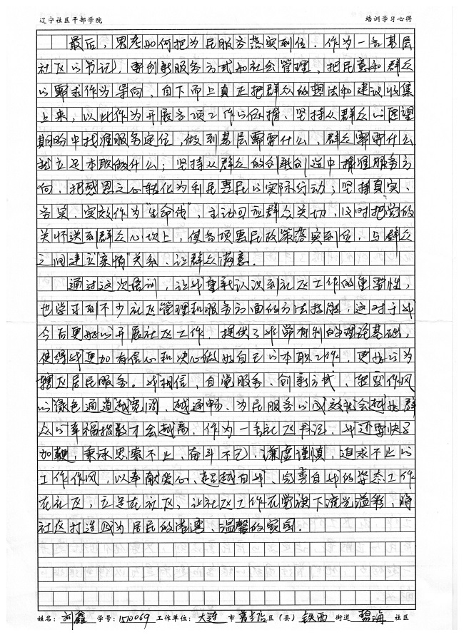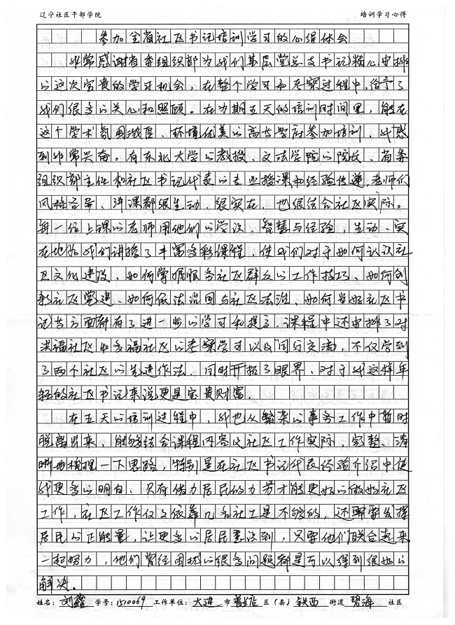 大连市普兰店区铁西街道碧海社区刘鑫培训学习心得