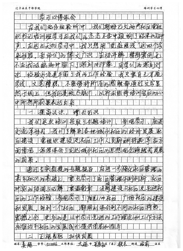 大连市瓦房店市铁东街道站前社区书记姜超培训学习心得